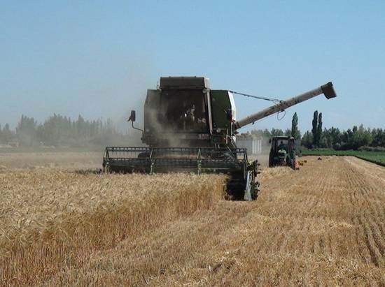 7月8日,在一四九团农业公司14党支部74条田,马达轰鸣,一辆收割机正在收割小麦,拉开了一四九团夏收小麦的序幕。